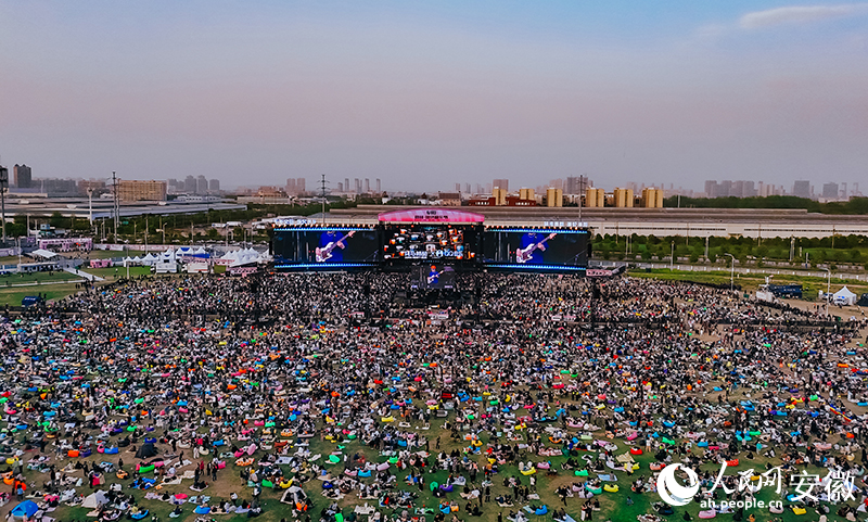 台下观众或轻声和唱,或挥舞荧光棒,与舞台周边飘香的美食展销会共同构成了一幅充满烟火气的夜间消费图景。