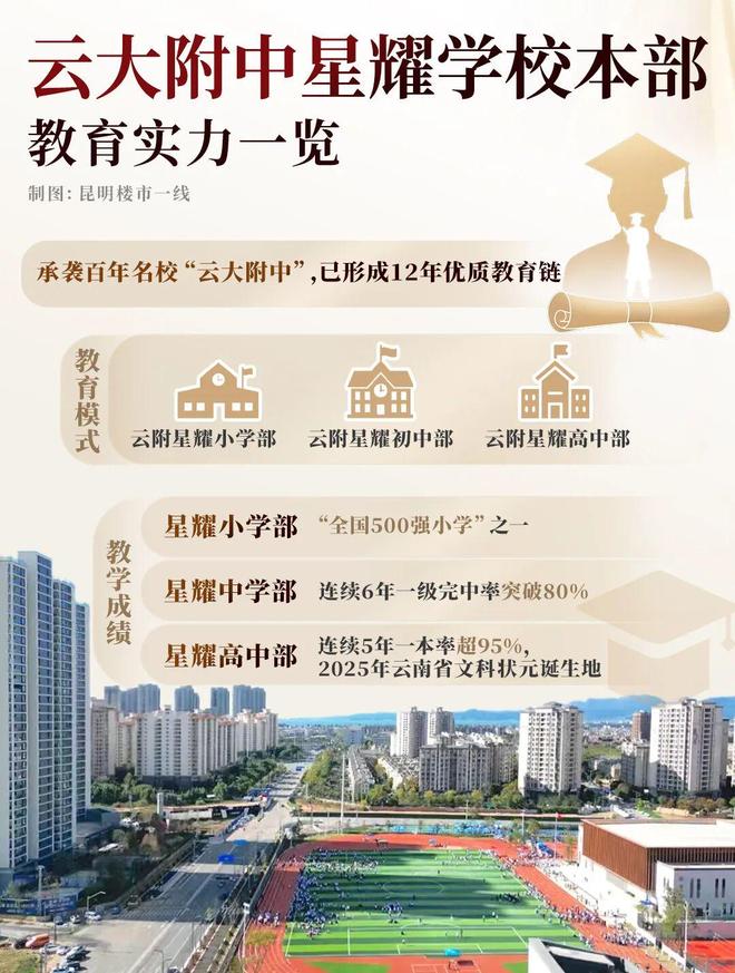 目前,项目2024年、2025年两批次的适龄小业主已成功入读云附星耀本部的小学和初中,教育确定性看得见。