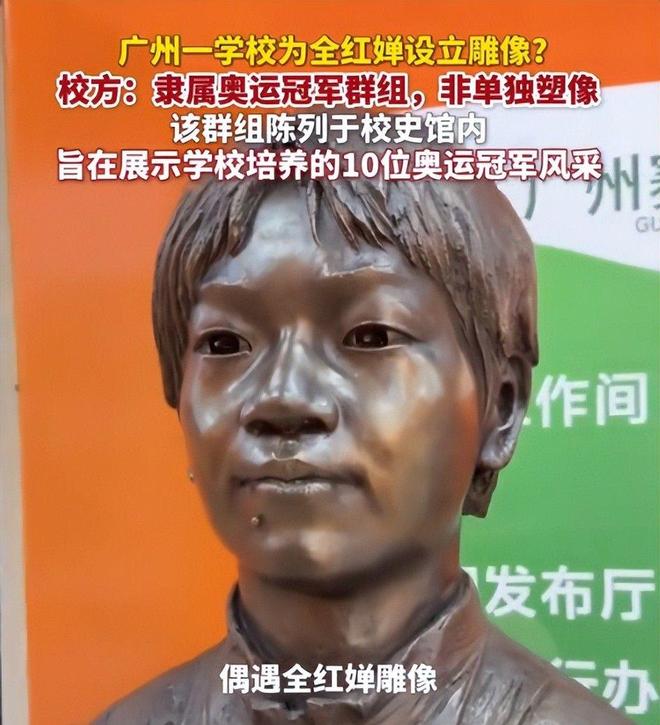 广州某学校为全红婵设立铜像的消息一经传出,立刻引发广泛关注。这尊塑像与刘诗雯、陈艾森等奥运冠军一同陈列于校园之中。