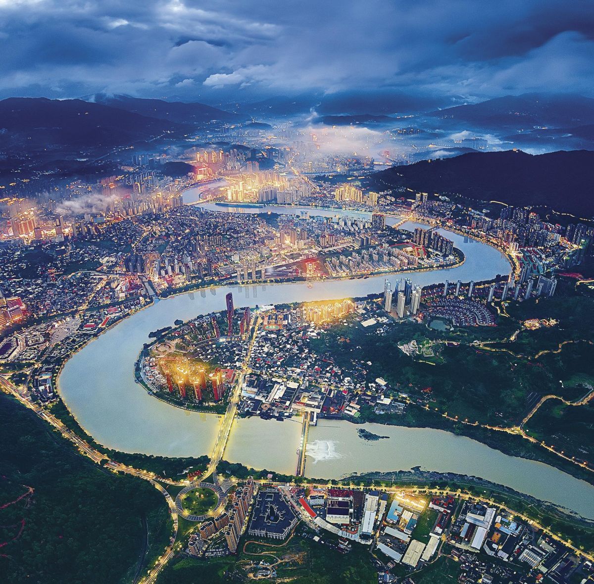 夜幕下的安溪,并非只有灯火。在凤山清隐茶馆的露台,茶香与夜色交融,远山如黛,近水含烟。俯瞰城区,流动的车灯是大地跳动的脉搏,万家灯火是散落人间的星辰。这宁静而丰盈的夜晚,是“中国茶都”安溪最平常的注脚。