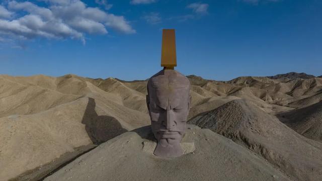 该雕塑以红砂岩雕琢而成,高达15米,仅头部露出地面,身体部分则隐于沙土之中。因其表现手法独特,且汉武帝眉头紧皱、神情凝重,被不少网友形容为“活埋汉武帝”,有人评价其视觉效果“诡异”,甚至质疑创作动机“用心险恶”。