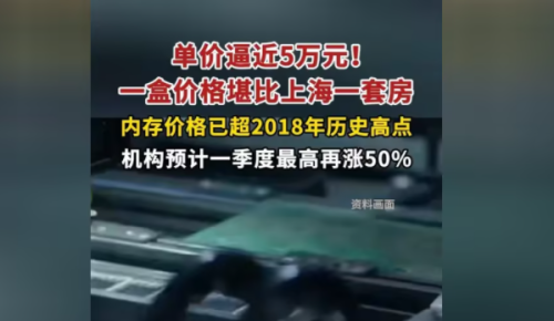 一根256G的DDR5服务器内存,标价已经冲到了49999。你没看错,是将近5万一根。这要是按一盒100根来算,那就是将近500万。什么概念?上海内环一套房,差不多就是这个价。内存条,正式加入了“可以换房”的神奇商品行列,和茅台、大金砖并列。