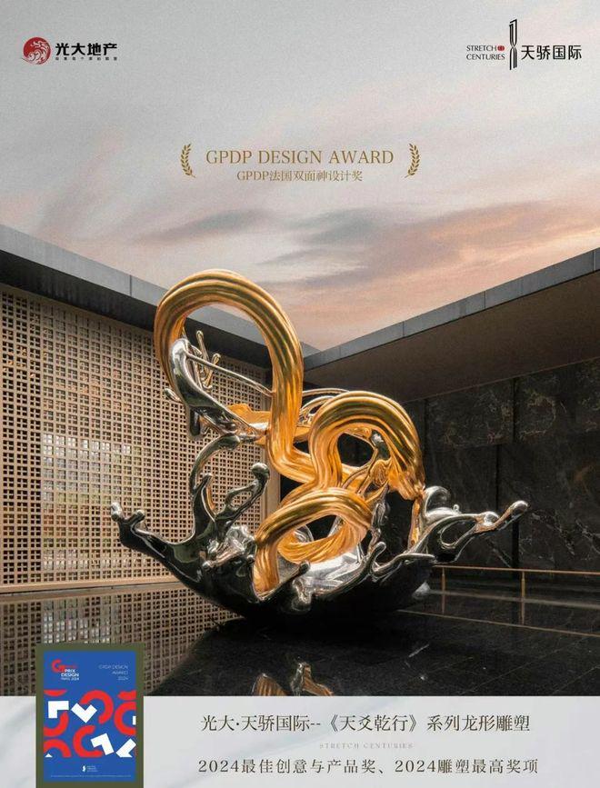 GPDP法国双面神设计奖获奖作品:《天爻乾行》系列龙形雕塑获得奖项:2024最佳创意与产品奖、2024雕塑最高奖项设计亮点:以《周易》卦象为魂,化龙形雕塑为境,展现艺术质感与现代魅力。注:1951年由法国设计学院成立,誉为世界设计界三大“奥斯卡”工业设计大奖之一。