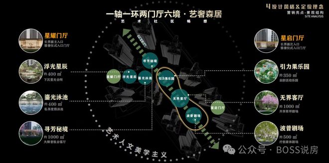 一轴:约 300 米艺境归家路,串联香氛迎宾、流水花园、中央草坪等节点,归家仪式感拉满。