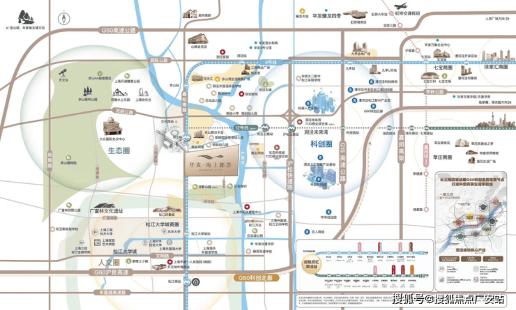 合心规划产城样板:【“科创+人文+生态”城市单元示范】华发海上都荟首入松江,携崭新“优+产品体系5.0”,为洞泾、乃至为松江带来目前区域内综合高品质作品。结合上海生态环境保护“十四五“规划,站位国际领先的可持续性项目规划,华发海上都荟结合自身的独特聚合优势,在传统TOD规划之上,不可复制的土地生态资源,向东链接G60科创走廊“以镇命名为区块”洞泾人工智能产业基地;向南直达亚洲大学城之一——松江大学城;北侧紧连上海陆面自然山林资源——佘山国家旅游度假区。板块将区域打造成为“科创+文教+生态”交汇的核心新城模式,划立一个崭新的城市单元示范。
